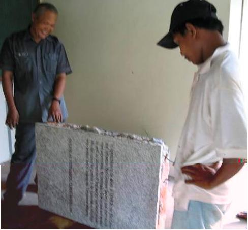 trại giải thích rằng câu viết trên bia sai nên phải đem đi sửa lại... Tượng