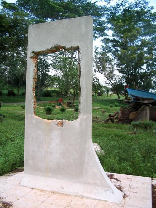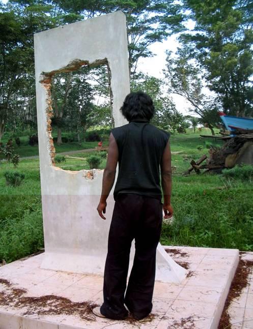 Tượng đài Thuyền Nhân xây bằng xi măng có gắn hai tấm đá hoa cương vừa tưởng