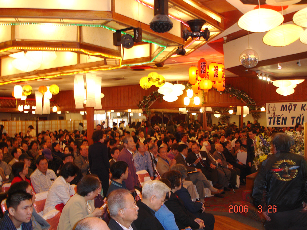 Ban tổ chức cảm ơn quan khách tham dự đã nhẫn nại lắng nghe và chăm chú theo dõi buối nói chuyện dài 3 tiếng đồng hồ trong vòng im lặng cho tới phút chót. Rất tiếc rằng vì phương tiện eo hẹp của Ban tổ chức, nên khoảng 150 tham dự viên đến muộn, không vào được phòng Khánh Tiết đã kín chỗ, nên đã phải ngồi ở phòng ăn bên Nhà hàng theo dõi buổi nói chuyện qua các màn ảnh truyền hình. Ban Tổ Chức thành thực cảm ơn tất cả các qúi vị đã tích cực góp phần vào công tác vô vị lợi và có ý nghĩa này; nhờ vậy, buổi nói chuyện đạt được kết quả tốt đẹp.